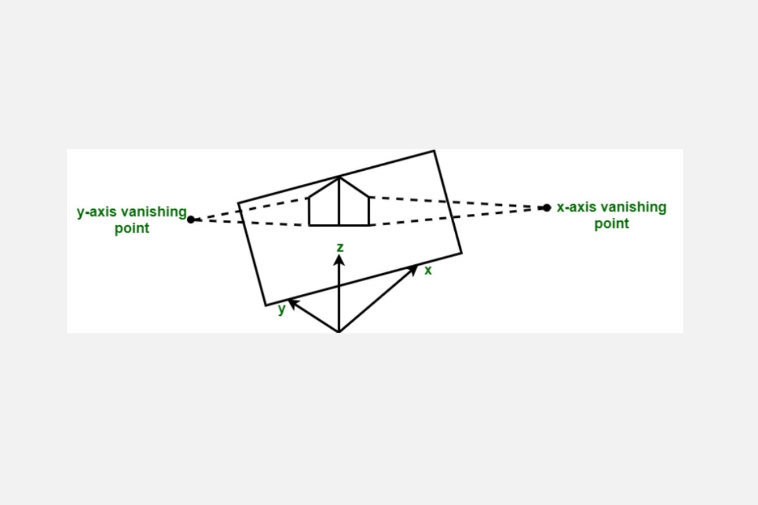 - More complex, involves vanishing points.